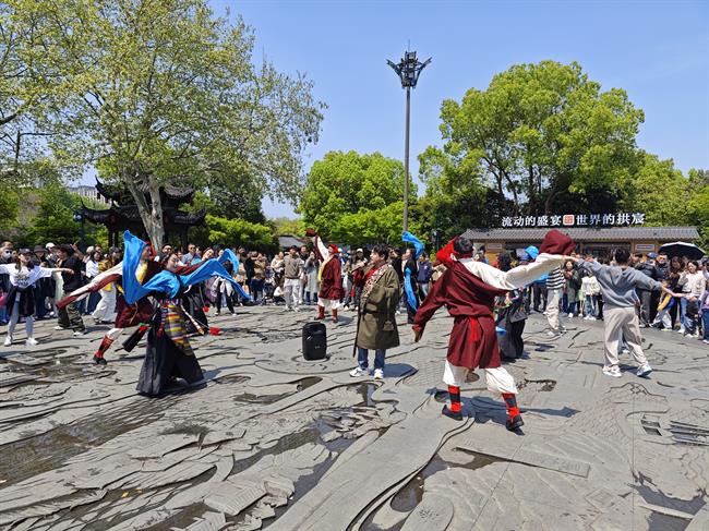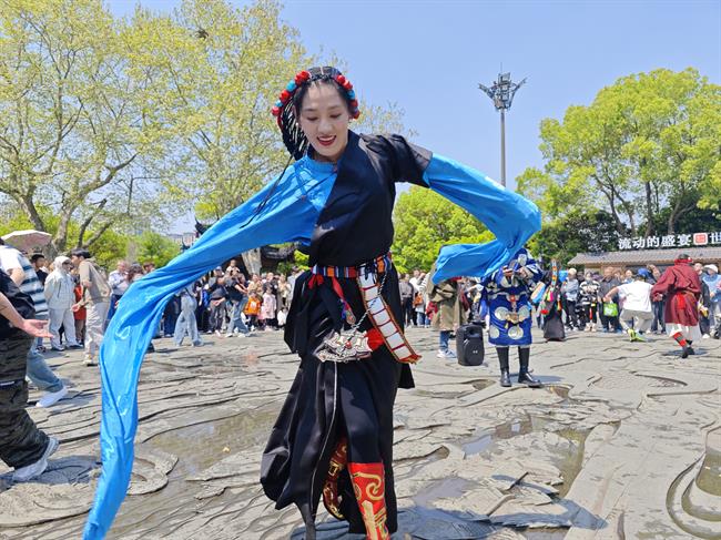 为给民族歌舞诗“那山·那水·那曲”演出预热,浙艺文化培训公司还结合现场教学,组织那曲艺术团文艺骨干们在杭州大运河广场表演藏族舞蹈—锅庄舞,吸引了现场上千名观众参与互动。