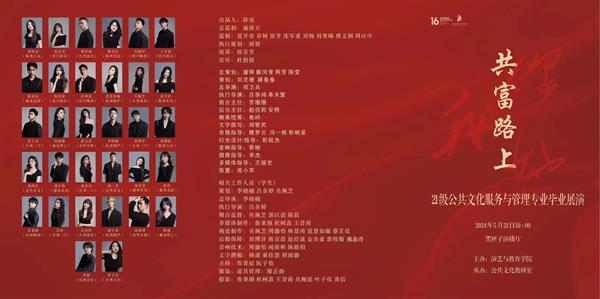 5月21日晚,演教学院2021级公共文化服务与管理专业定向班举办“共富路上你、我、她”毕业展演上演,展现了21届乡镇文化员优良的精神面貌和丰富的技能储备,同时,为他们在校学习的三年画下了圆满句号。