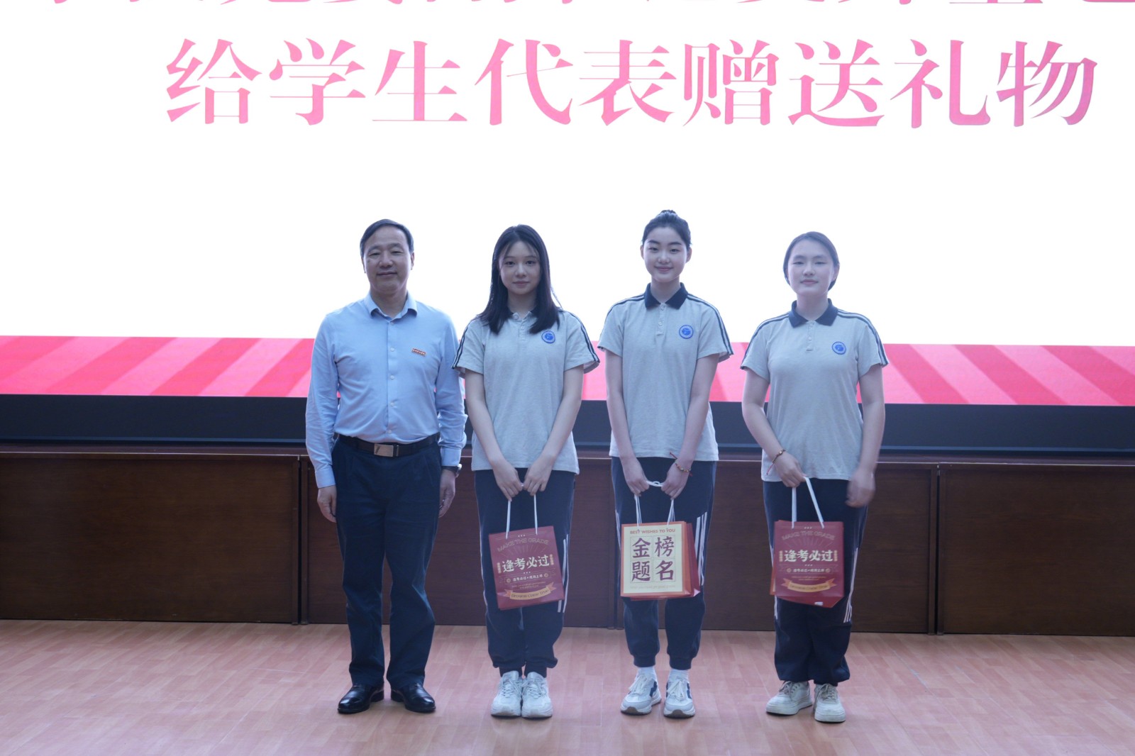 夏开堂为考生代表颁发粽子、定胜糕等礼物,预祝所有考生能旗开得胜,一举高中!