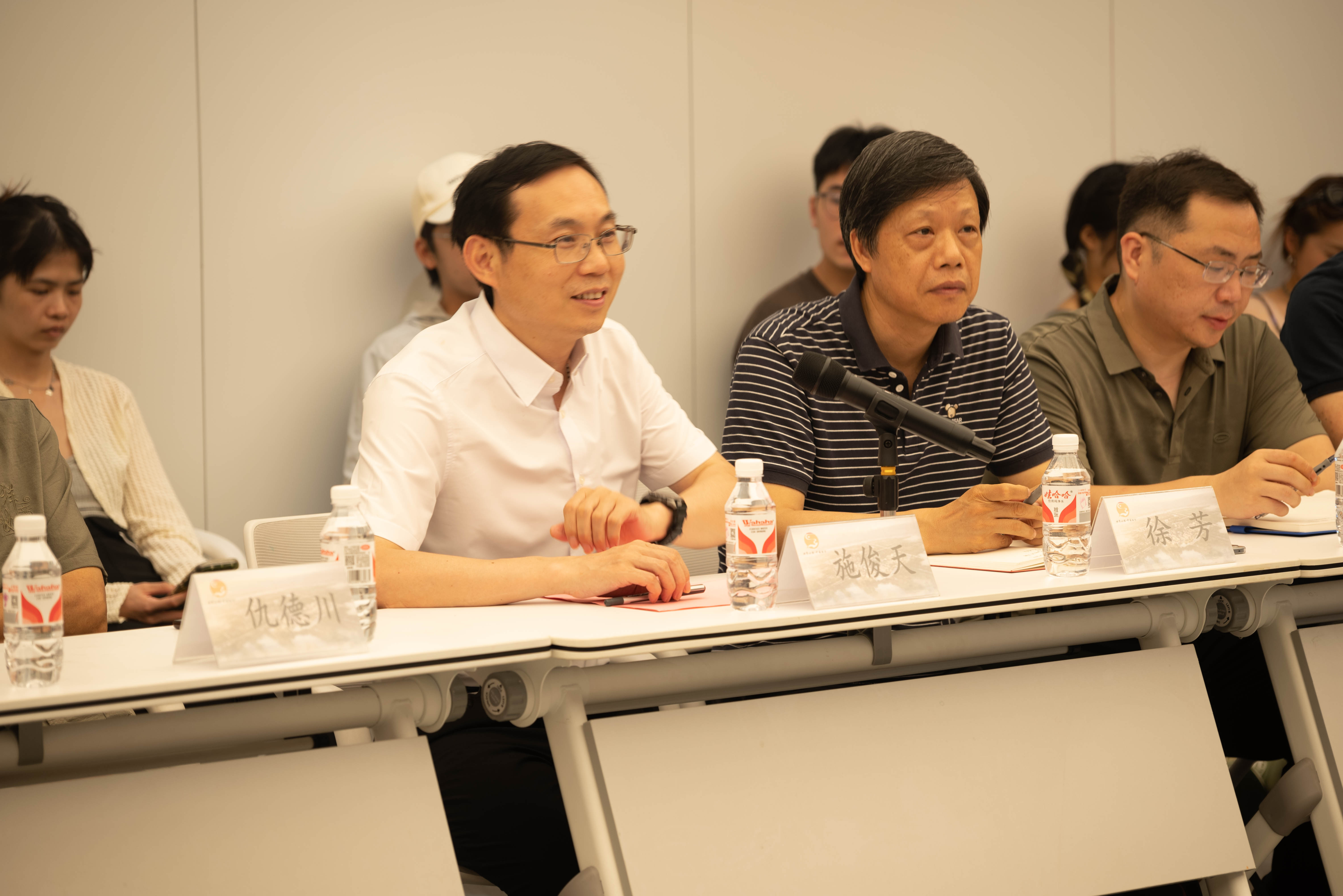 ▲浙江省首批文化特派员选派启动仪式后,陈楠江(左)、齐帅(右)与校党委书记薛亮合影留念
