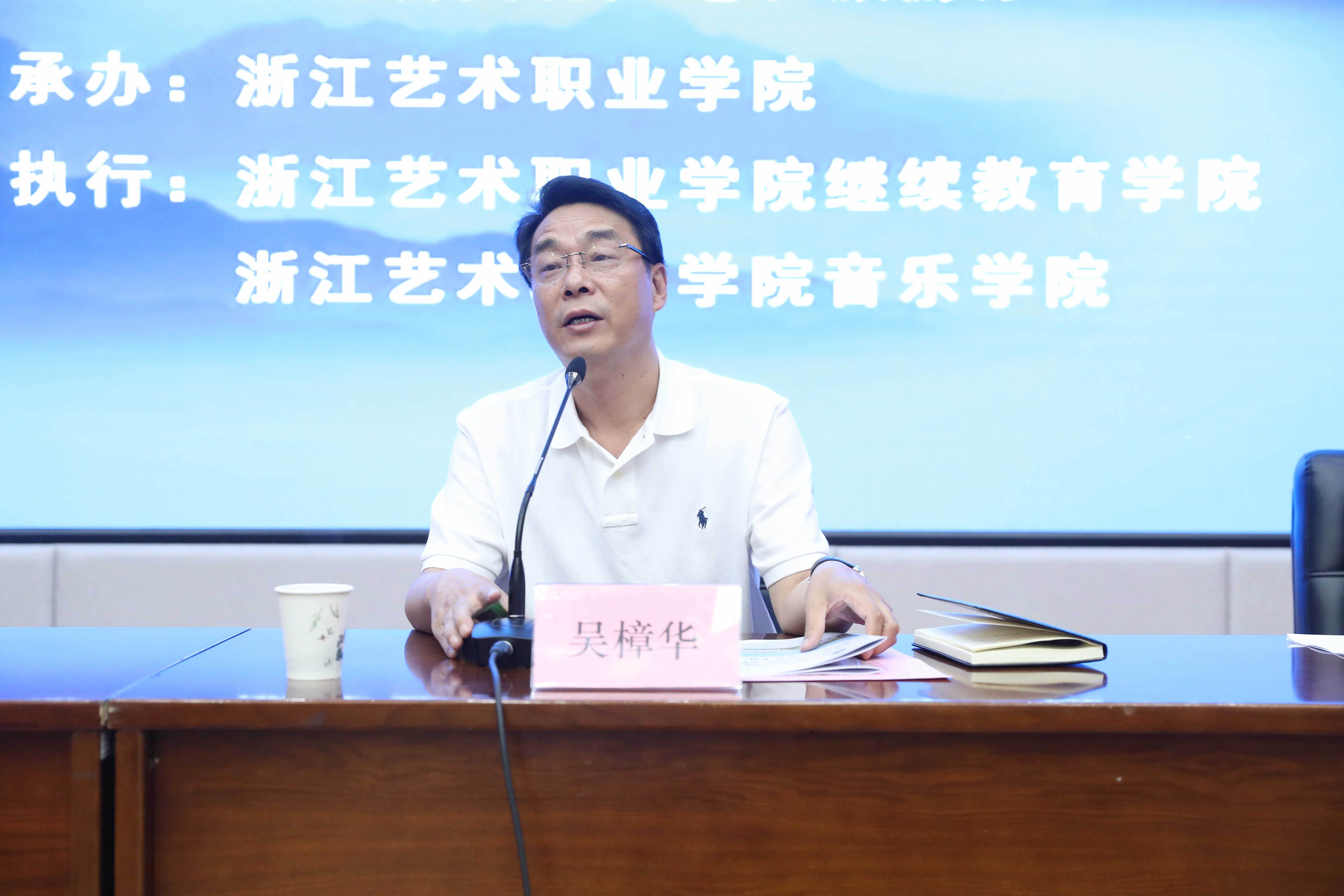 吴樟华介绍了浙艺音乐学院的专业优势和为本次培训配备的强大师资阵容,以及精心设计的课程内容。