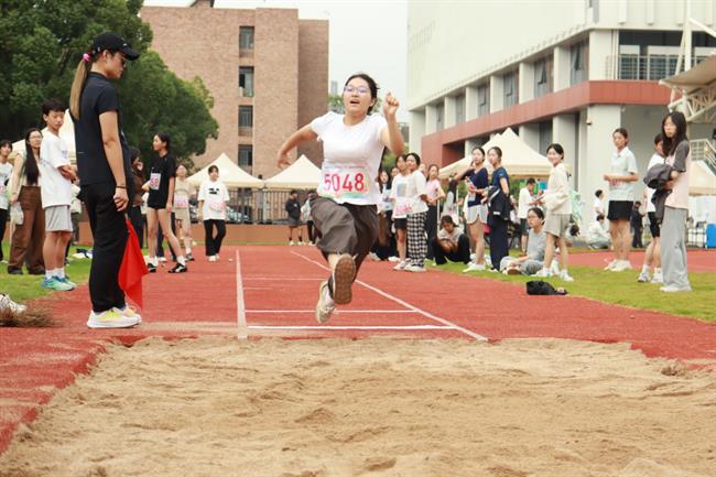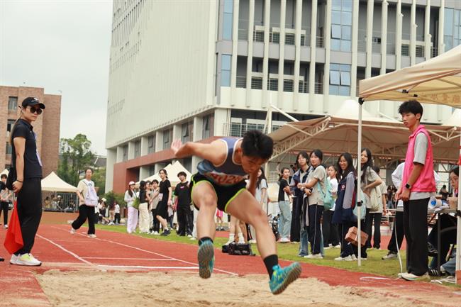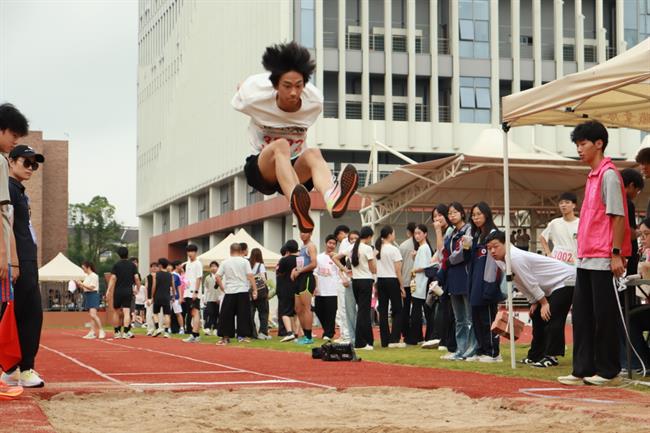 跳远赛场上的欢呼声此起彼伏为选手加油打气
