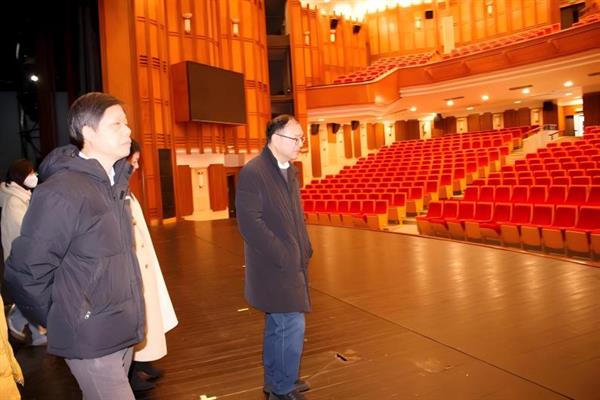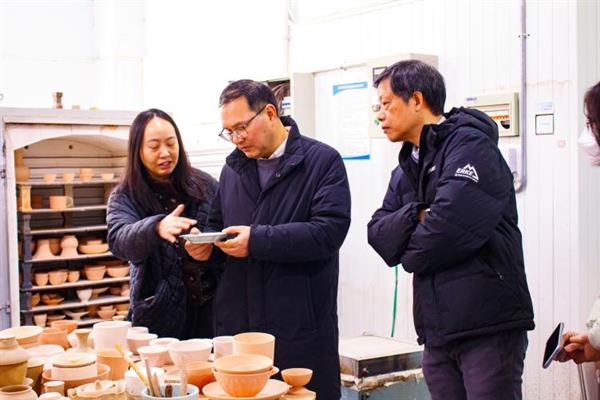 王玉庆依次前往戏曲学院、音乐学院、实验剧场、综合楼以及手工艺学院陶艺实训室进行考察。每到一处,他都仔细听取负责人的介绍,细致入微地询问学生的学习、生活和就业情况,深入了解了我校的历史文化底蕴,全面了解学校教学实训场地与设施设备的使用情况,对于学校的专业设施、教学水平、教职工队伍的良好素质、学校的整体风貌有了充分的了解,他对学校的教学水平和实训条件给予了高度评价,并鼓励学校再接再厉,持续发挥自身优势,为培养更多优秀人才做出贡献。