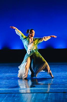 群舞《西施别越》取材于浙江诸暨西施的故事,以独特的视角,戏剧性的叙事,塑造了一位深明大义的女性形象,同时也彰显坚贞不屈的古越风骨。