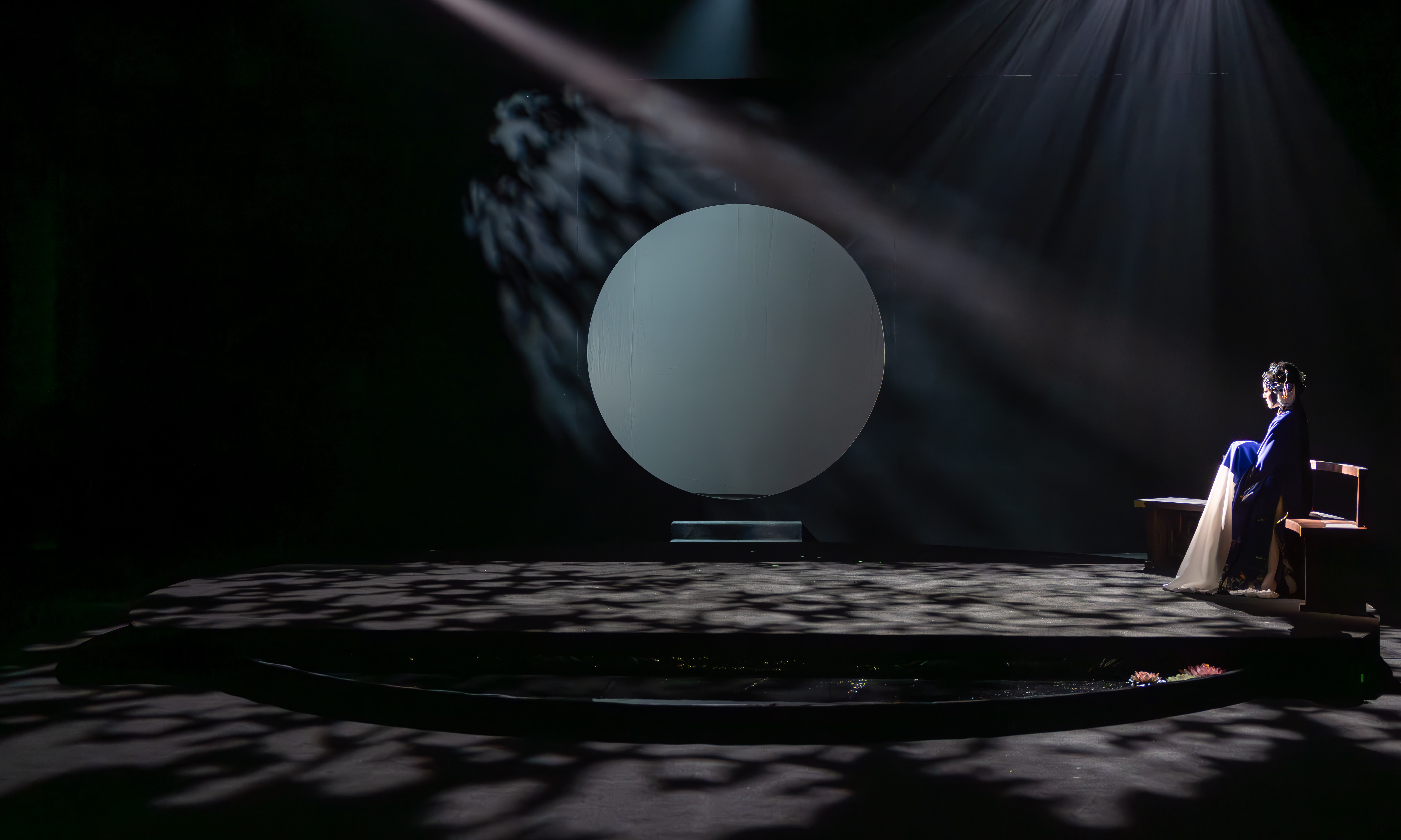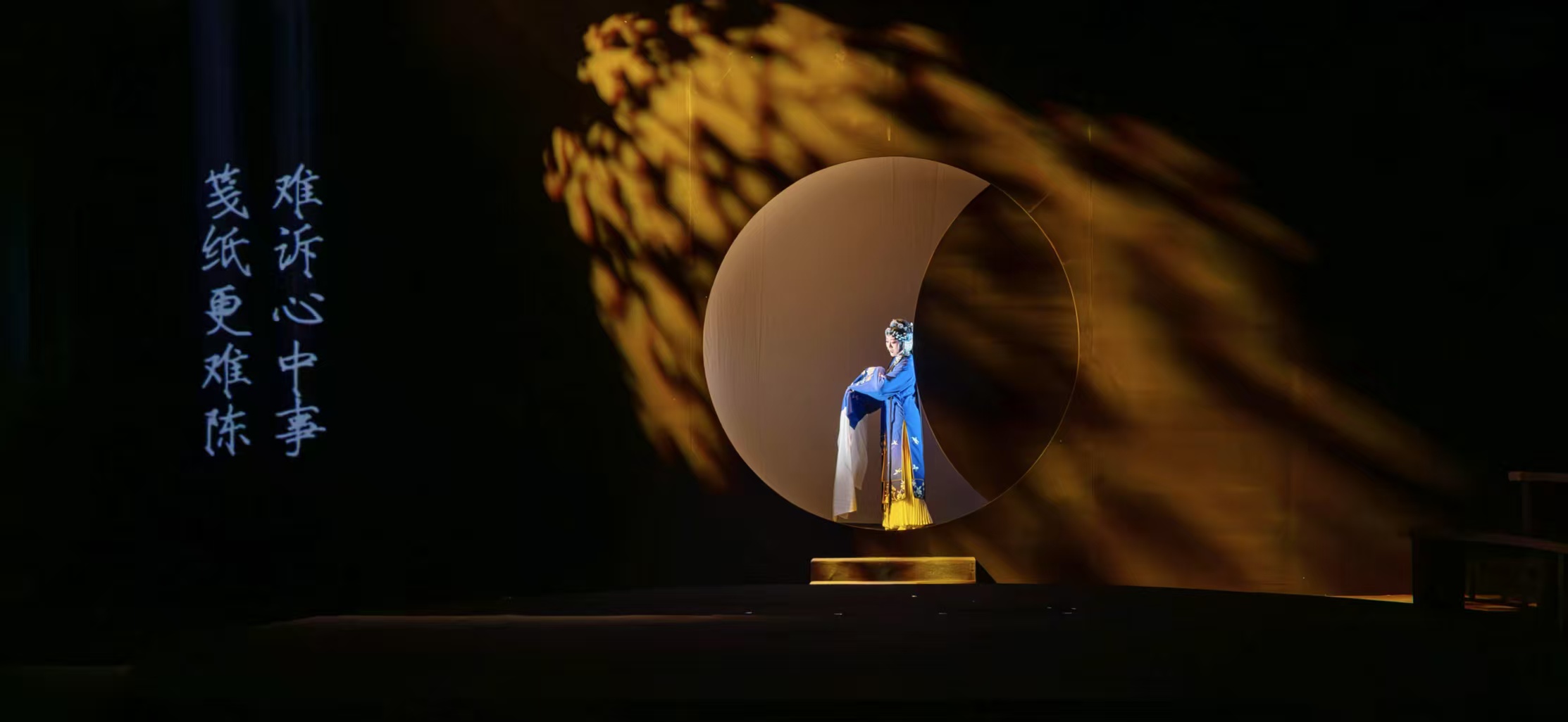 作为高校原创先锋越剧,《颜氏》融合多元艺术形式,别具一格。创作上,它吸纳梨园戏身韵与古典舞精髓,拓展越剧表现力,探索观众喜闻乐见的表现形式;音乐紧扣越剧声腔特色,打造具有江南古典气质的音乐氛围;舞美设计简洁而富有巧思,通过月的变化映照主角的内心变化;造型设计古典雅致,凸显人物气质,注重人物心理情感外化。主人公“颜氏”采用袁派、“沈蓉”采用尹派,唱腔纯正,又融入梨园戏表演技巧,对越剧旦角的身段、水袖、指法等进一步雕琢,让越剧程式与人物内心融为一体;配角“梅香”和“安童”灵动出彩,活泼有趣,发挥戏剧间离作用,强化与观众的交流,为全剧增色。