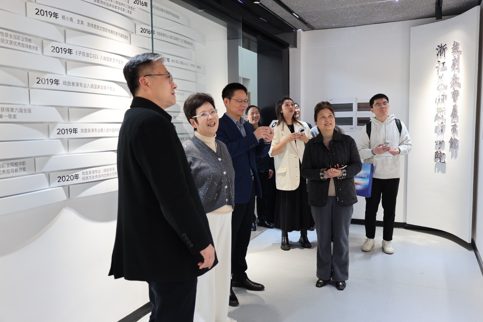 赵依芳一行还参观了黑匣子剧场,戏曲学院、音乐学院、舞蹈学院、戏剧影视学院、设计学院各类实训室,观摩课堂教学,毕业生毕业设计作品展,了解专业设置、课程建设等情况。