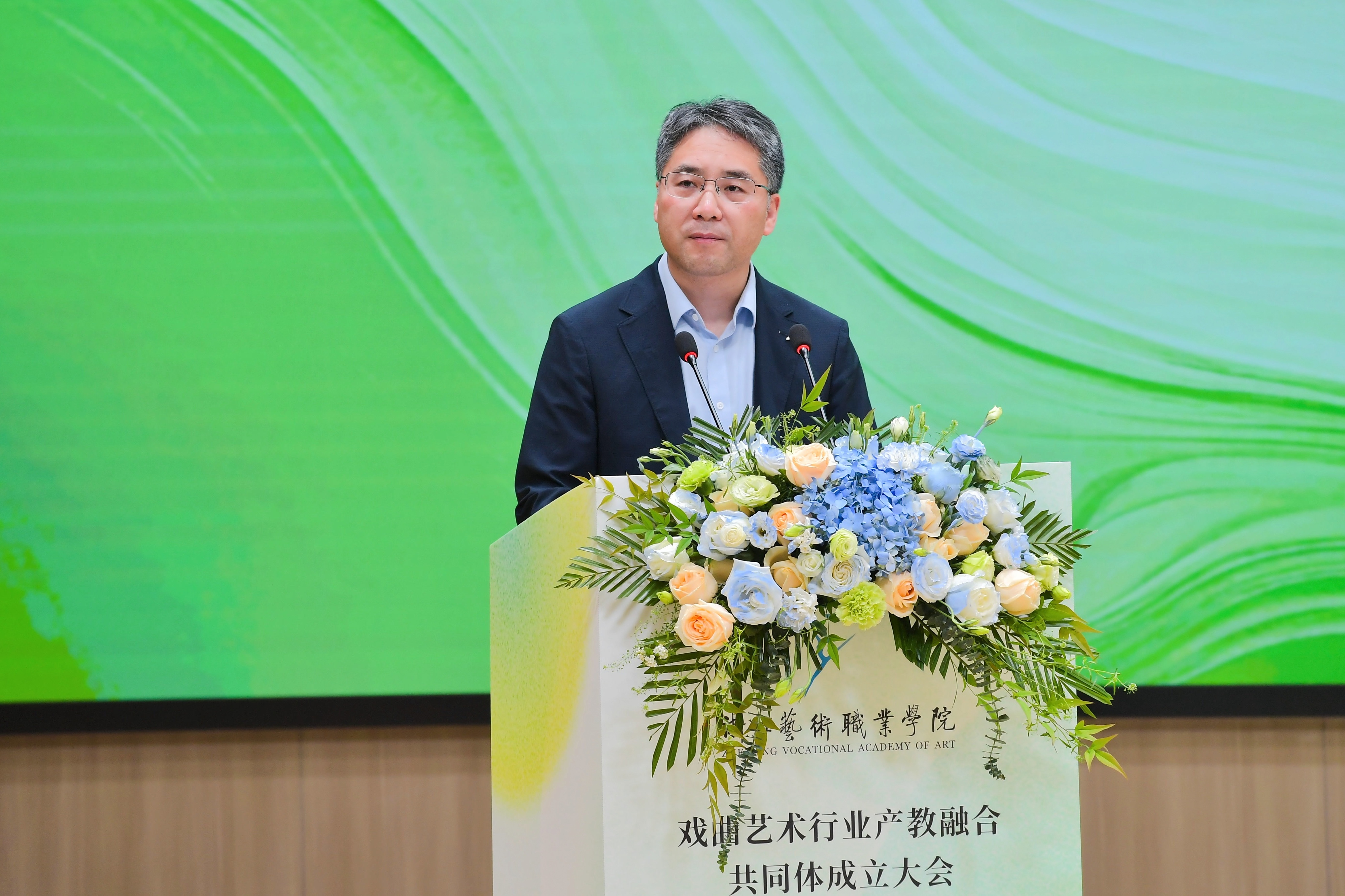 作为戏曲艺术行业产教融合共同体发起单位代表,浙江演艺集团有限责任公司董事长、总经理周阿勇,中国戏曲学院党委常委、副院长姚海琳分别从演艺区域龙头企业、高水平大学建设视角,描绘了共同体建设蓝图,展望了戏曲艺术行业的传承与创新发展。