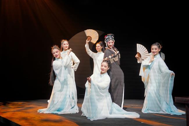 该剧的主创阵容由校企双向师资团队联手打造。主人公“颜氏”采用袁派唱腔,“沈蓉”则采用尹派唱腔,唱腔纯正且融入了梨园戏的表演技巧。配角的表演也灵动出彩,为全剧增色不少。演出得到了共同体参建单位观演嘉宾及现场观众的一致好评。
