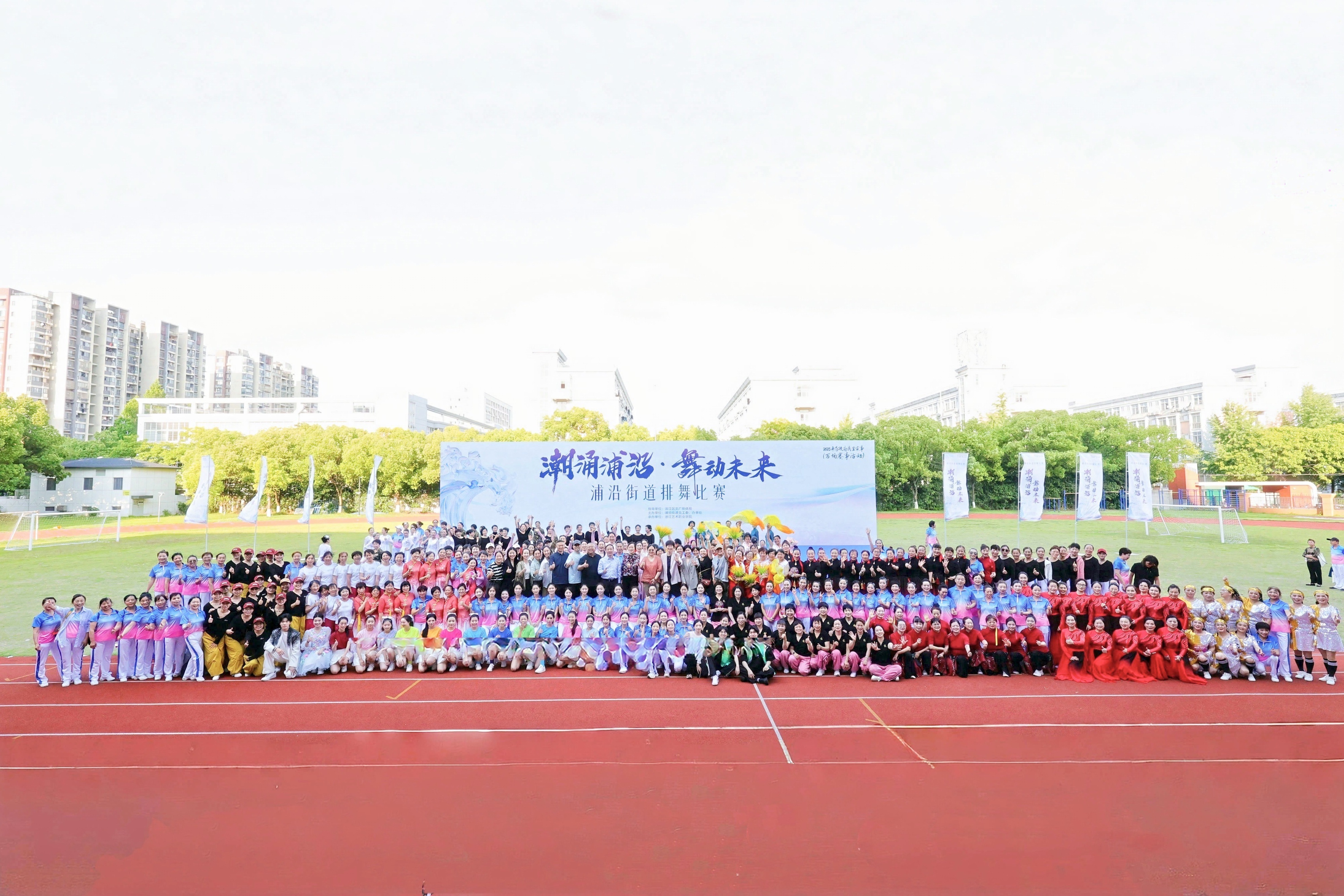活动现场,24支参赛队伍,近400名舞者队员不仅以热情舞步、昂扬姿态对《潮涌浦沿》进行了演绎,还带来了风格迥异,各具风采的自选曲目:西浦社区的《在希望的田野上》舞蹈充满了激情与正能量,展现了浦沿人民积极向上的精神风貌和对生活的无限热爱;信诚社区的《潇洒走一回》以现代都市女性的飒爽风姿为内核,突破传统排舞的框架,用充满力量感的街舞元素与爵士律动诠释独特魅力;浦联社区的《健康赢未来》用刚柔并济的动作展现了新时代的蓬勃朝气,传递了一种积极向上、永不放弃的精神……