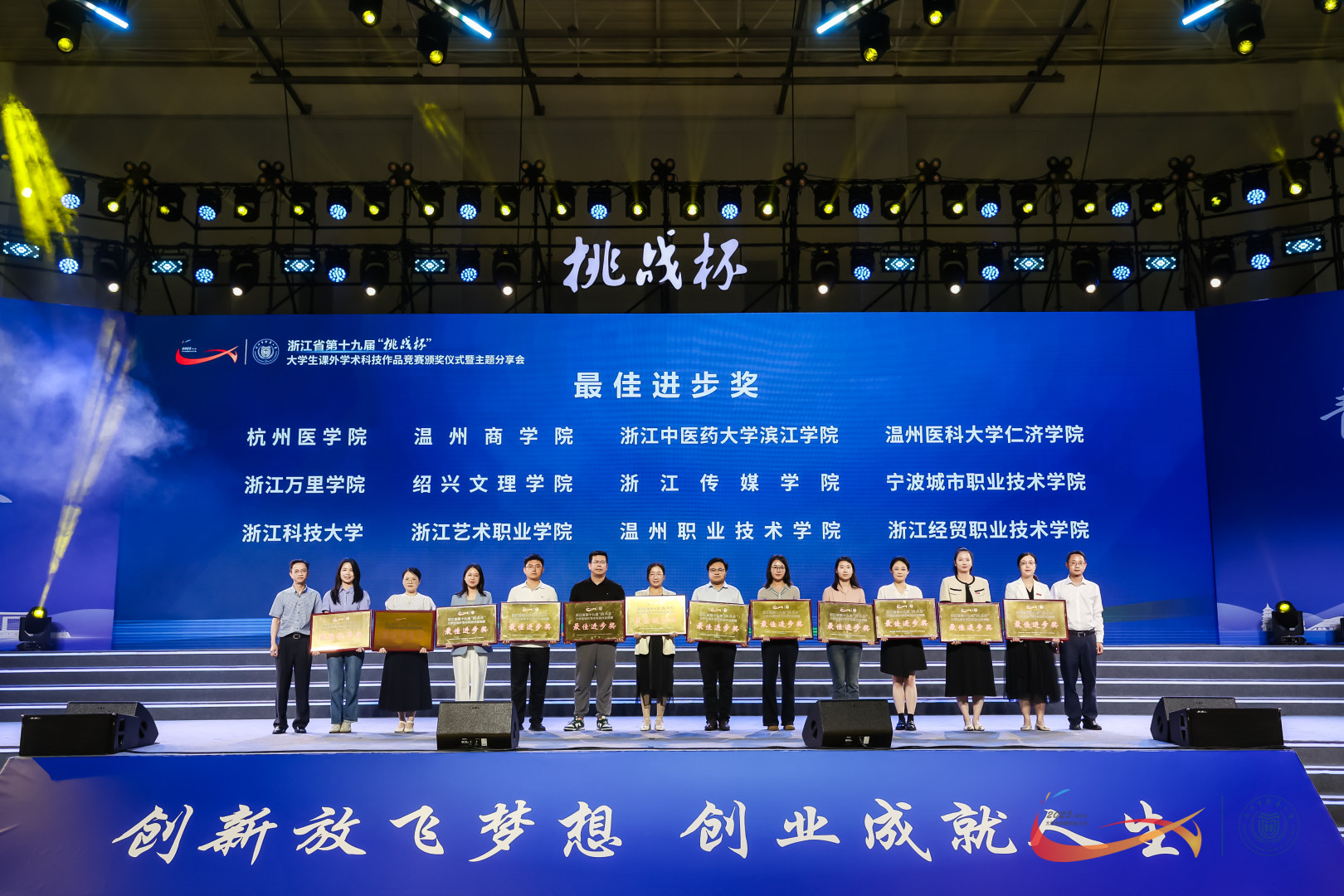 5月18日,浙江省第十九届“挑战杯”大学生课外学术科技作品竞赛在浙江中医药大学落下帷幕。经过与全省本专科院校激烈角逐,我校共获金奖2项、银奖3项、铜奖8项,主体赛金奖数在全省高职院校中位列第2,并荣获“最佳进步奖”,实现了学校在该项赛事的新突破。