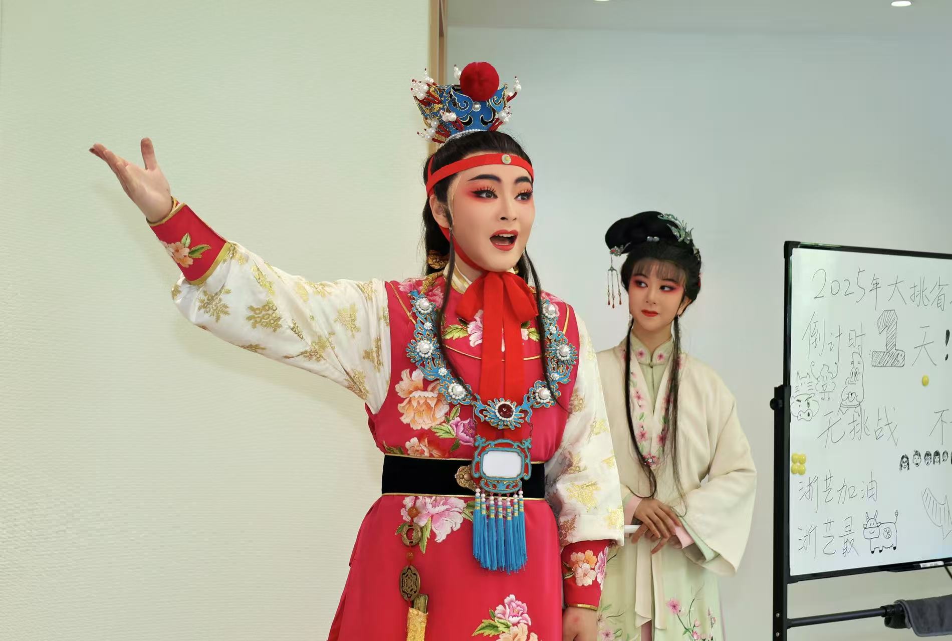 听到获奖消息,我满心感恩和兴奋。这份荣誉不仅是对过去努力的肯定,更是未来前行的动力,我会带着它继续在弘扬发展戏曲艺术的道路上勇攀高峰。