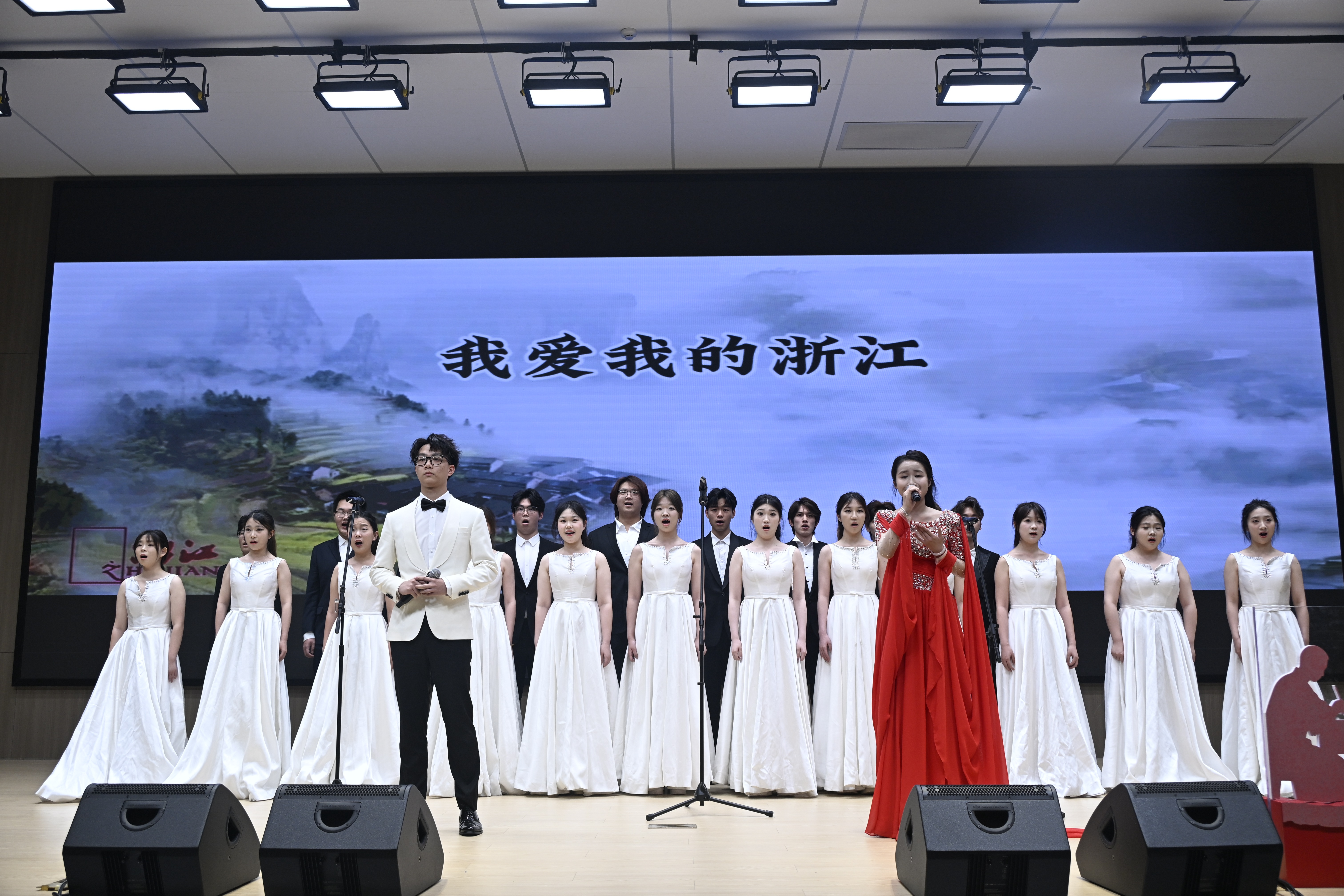 第三篇章“使命之约——强国有我新征程”展望了新时代青年的使命担当,朗诵《誓言铮铮心向党》表达青年爱党强国之志,情景剧《龙泉剑瓷》以文化传承创新助力共同富裕,微宣讲《“钳”住新密码 “义”起话共富》以未来乡镇文化员的视角解锁乡村振兴的新密码,大合唱《我和我的浙江》将活动推向高潮,抒发了浙艺人对浙江的热爱与自豪。
