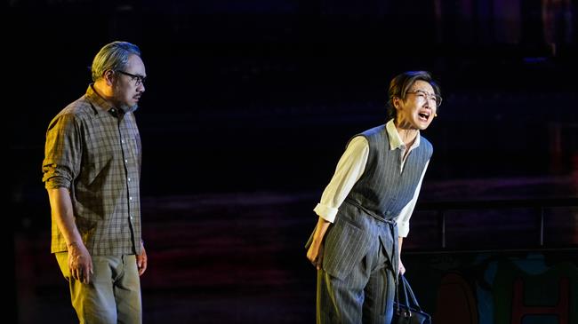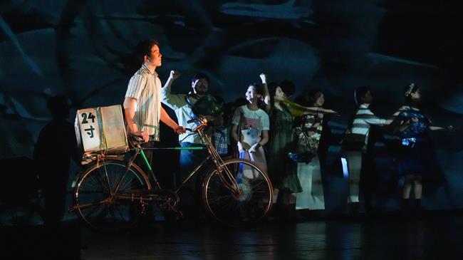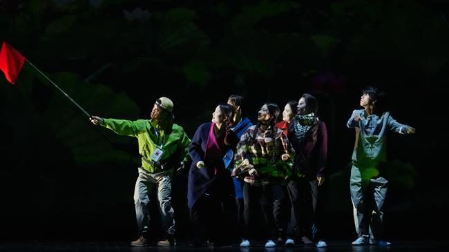 舞台之上,脚手架化作城市骨骼,霓虹灯切割昼夜光影,歌队穿梭于现实与幻梦,解构人物的灵魂独白。特别的是,剧中汇聚浙艺退休教授、在职教师、毕业生与在校生——“师生同台创排”的设计,让舞台人生与现实人生交相辉映。