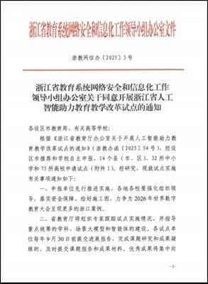 我校入选浙江省人工智能助力教育教学改革试点学校