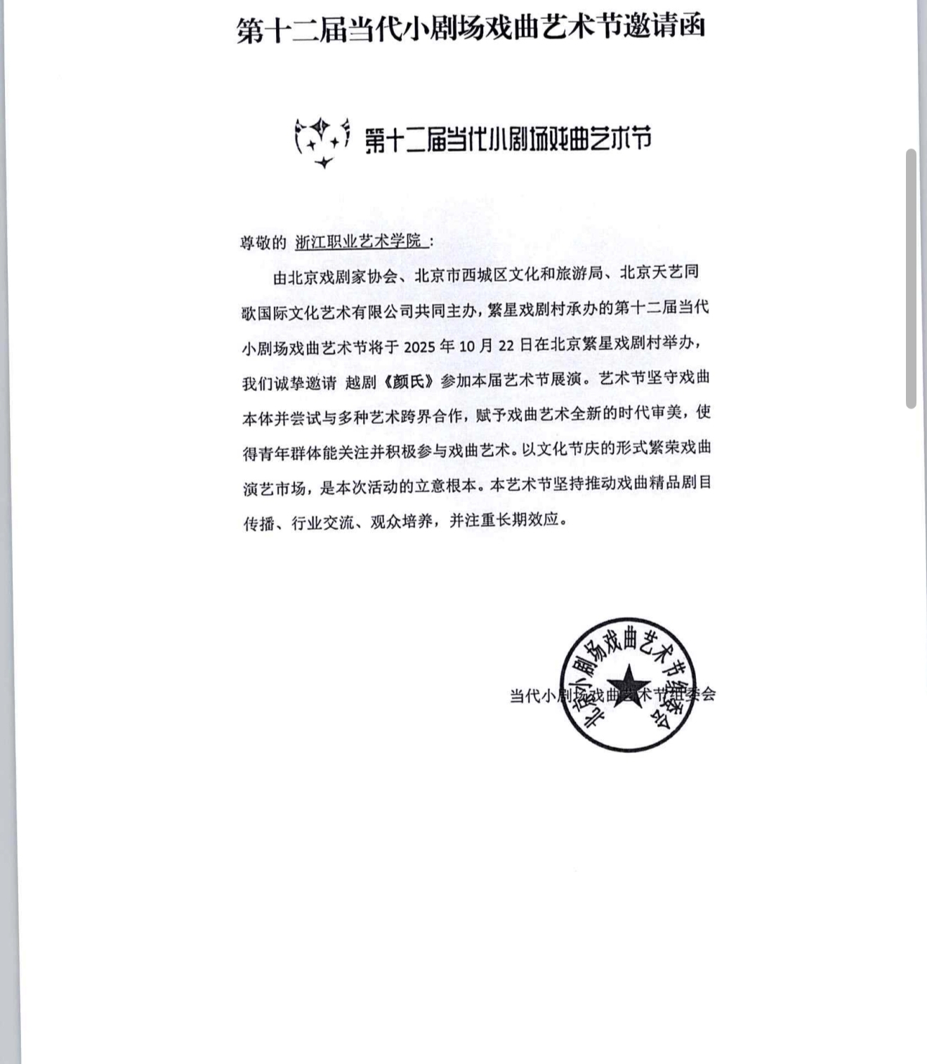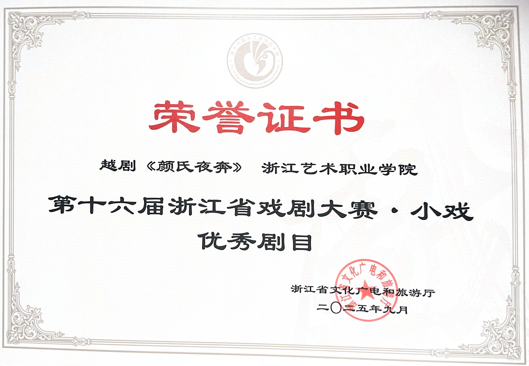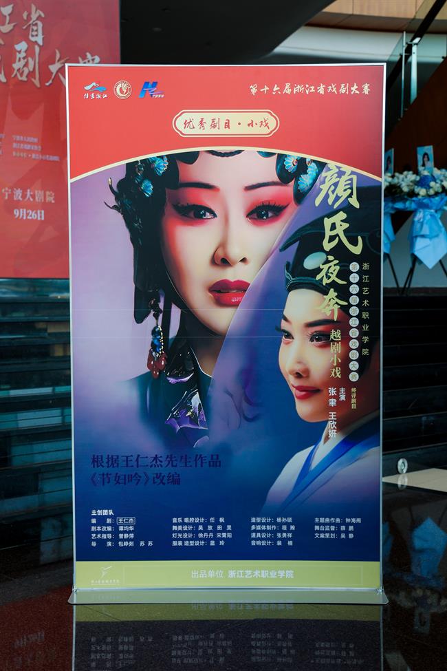 9月26日晚,第十六届浙江省戏剧大赛闭幕展演在宁波大剧院举行。我校师生携手演绎的越剧《颜氏夜奔》获评第十六届浙江省戏剧大赛·小戏优秀剧目,并参与闭幕展演。同期,90分钟版小剧场越剧《颜氏》获评浙江演艺新空间重点剧目,并成功入围第十二届当代小剧场戏曲艺术节。