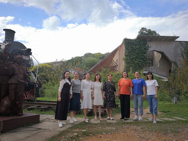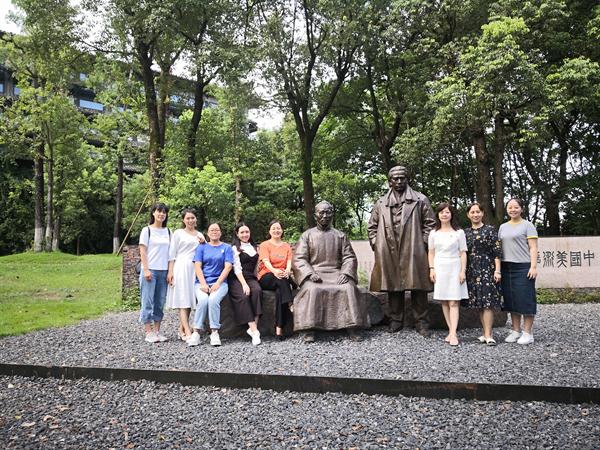 直属党支部书记刘秀峰同志带领教师们来到巨匠广场,广场南侧坐落着蔡元培、林风眠和潘天寿等人的雕塑,北侧是新立的《烽火艺程》大型纪念浮雕,刘书记介绍了这座雕塑的纪念意义。抗战全面爆发后,杭州艺专师生被迫辞别西湖,辗转各地,十迁其址;九载光阴,杭州艺专师生坚持办学、矢志不渝,堪称一条壮怀激烈的烽火艺程。在国家危难之际,艺专师生心系国之兴亡,在迁徙途中的万千白壁上书写爱国之志,让硝烟弥漫的大地变成漂泊的艺术殿堂,可谓我国艺术教育史上的卓越篇章。听着她的解说,大家对如此伟大的救亡义举而感到热血澎湃,更加珍惜当今“百花齐放、百家争鸣”的艺术盛景。