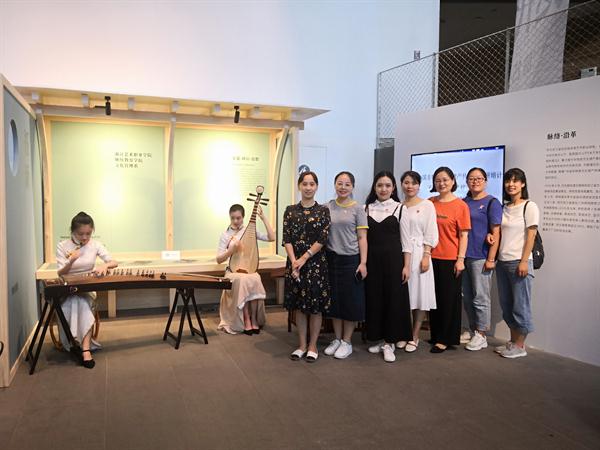 全体成员还参观了美院民艺馆的《生根·迭代——浙江高校非遗研培的实践》展览,刘书记给同志们深入浅出的讲解了中华优秀传统文化的精神内涵以及非物质文化遗产对传承优秀传统文化的重要性。她强调在新的历史条件下,把传统技艺与现代生活相结合是非遗传承必须克服的难题,而创新优秀传统文化、实现传统文化的创造性转化需要相信新一代的年轻人,相信青年人的眼光。