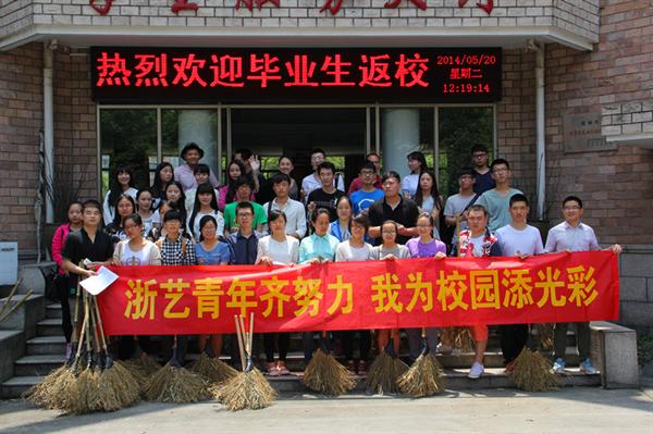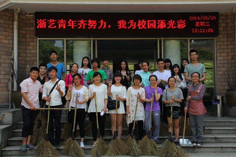 今年是五四运动95周年。5月20日中午,院团委、院学生会举行“浙艺青年齐努力·我为校园添光彩”专项行动,通过组织青年教师、团干部、学生干部以发表宣言、集体清洁美化校园等形式,引导和激励广大青年坚定中国特色社会主义理想信念,践行社会主义核心价值观,发扬志愿服务精神,增强爱校意识和职业意识,为全院青年学生树立榜样。