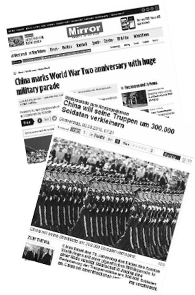 图为英国《镜报》网站(上图)和德国《焦点周刊》网站(下图)关于“9·3”大阅兵的报道。来源:人民网