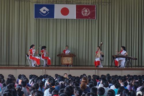 艺术团进入每个学校演出,均受到师生们的热情欢迎。艺术团师生为当地观众表演了一台充满中国民族特色的节目。民乐合奏《花好月圆》轻快明亮、悠扬婉转;女子独舞《孔雀飞来》富有民族特色的舞姿和明快的音乐令人陶醉;舞蹈《微笑之秋》展现了艺术团学生们的青春活力,展现了舞蹈美、音乐美和青春美,描绘出美好的抒情画面,感人肺腑;舞蹈《忍者学员》节奏动感,三个男生刚劲矫健的舞姿每次赢得观众阵阵掌声;笛子独奏《西湖春晓》、女子三人舞《小城雨巷》、民乐三重奏《倒垂廉》、男子独舞《恰同学少年》等精彩不断,独唱《哆啦a梦》每每让全场观众打着节拍和唱。演出过程中,每个节目结束,掌声都非常热烈。当表演《天空之城》《多啦a梦》《忍者学员》等源自日本的文艺节目时,台下学生们跟着一起哼唱,反应热烈。每场演出后的艺术交流中,当地学生一致表示对中国民族艺术的喜爱之情,连连赞叹节目“太棒了!从来没听到过这么好听的歌曲,没看到过这么好看的舞蹈!”艺术团学生还现场教授乐器演奏。多所学校则以合唱校歌来致谢艺术团师生。全场演出交流结束后,日本学生热情而不舍地涌到舞台前与艺术团师生们热情地交流,合影留念,连连鞠躬致谢。在社会公演中,艺术团学生还与日方艺术家共演歌曲《北国之春》《花会绽放》和舞蹈《樱幻想曲》等节目,引起当地观众的共鸣。
