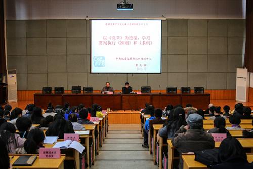 黄克招的讲座全面系统地阐述和分析了《准则》和《条例》。通过学习,与会同志认识到,两部最新党内法规是党中央总结党的建设历史经验、在新的历史条件下大力推进党的思想作风建设的重大举措。广大党员领导干部加深了对两项法规基本要义和具体内容的理解,把思想和行动统一到两项法规要求上来。大家纷纷表示,要认真学习贯彻落实两部最新党内法规,要以身作则,真正把自己摆进去,联系思想实际和自身职责,严格要求自己,做到不踩“红线”、不越“底线”。学院党委将以增强实效性针对性为目标,及时、扎实做好党内法规的宣传教育,教育引导全院党员将党规党纪内化于心、外化于行,为编制好我院“十三五”发展规划,深化教育教学改革,办好人民满意的教育提供政治保障。