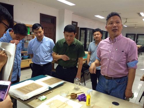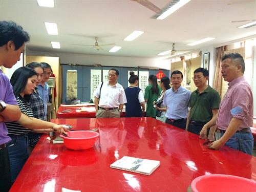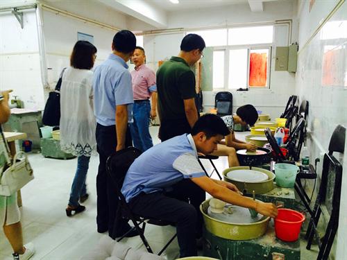 随后胡国光一行参观了音乐系、舞蹈系和文化管理系文物修复、文物鉴定、古籍修复、陶艺制作实训室等。