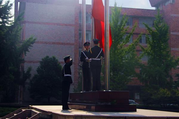 新学期正式上课第一天,学院在中心广场举行升旗仪式,共同纪念中国人民抗日战争暨世界反法西斯战争胜利70周年。