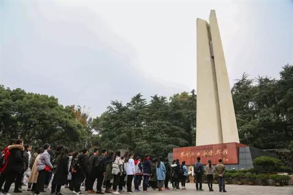 迎着清晨残留的寒气拾阶而上,入眼尽是苍松翠柏。“岂不罹凝寒,松柏有本性”,它们的庄严肃穆,也象征着革命先烈坚贞不屈的精神。黑色的石碑上,镌刻着革命烈士裘古怀的遗言:“同志们,胜利的时候,请你们不要忘记我们!”这一句简单的话语,道出了无数革命烈士最诚挚的内心。在讲解员的带领下,全体师生参观了革命烈士纪念馆内。纪念馆内的长廊里,是一幅幅镌刻着革命先烈事迹的浮雕。细致精美的橱窗中所陈列的一本本纲领草案、一封封革命信笺,是每一段可歌可泣革命故事的承载。随着讲解员的讲述,革命烈士为真理和信念宁死不屈的身影仿佛透过墙上一张张的照片在心头展现,全体师生都默默听着讲解员的解说,馆内气氛肃然。在这个和平鸽衔橄榄枝自由飞翔的新时代,革命烈士所留下的品质并没有为人所遗忘,裘古怀、郁达夫这些时常被提起的名字,代表的不仅仅是一个人,还是一种革命精神。他们为保卫国家而奋不顾身的精神在这个新时代不断衍化,衍生出一个个为实现中华民族伟大复兴而英勇捐躯的革命烈士,衍生出一个精神时代。