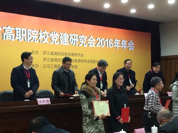 大会对年会优秀论文、优秀课题、优秀通讯员进行表彰,并开展党建、思政工作优秀科研成果专题交流。浙艺图书信息中心副主任(主持工作)金银琴的论文《构建主题立体阅读模式 提升学生阅读素养》获年会论文二等奖,并代表浙艺作优秀论文交流发言;影视技术系办公室主任王筱芽的论文《学分制背景下高职艺术院校思政建设及应用的实践研究》获年会论文三等奖;宣传教育处处长马向东2015年课题《艺术高职院校文化校园建设的特色和途径 》获优秀结题;宣教处干事阮奕被评为2016年度优秀通讯员。