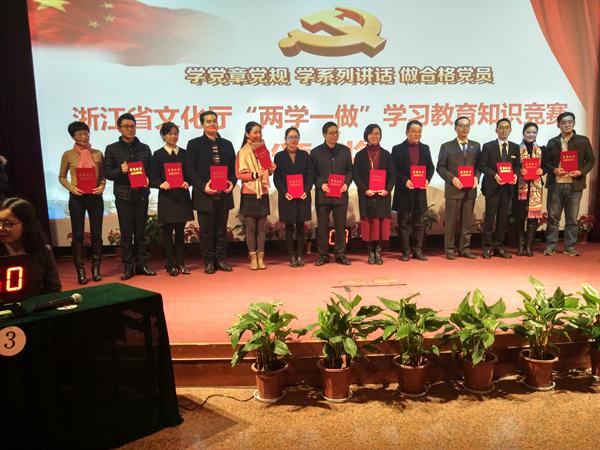 本次知识竞赛以《中国共产党章程》《中国共产党党员领导干部廉洁从政若干准则》《中国共产党纪律处分条例》和习近平总书记系列重要讲话精神等为主要内容,前后历时3个月。在网络初赛阶段,我院近300名党员师生、入党积极分子参赛,共有82人获得了满分,我院以初赛第一名的成绩进入复赛。在复赛、决赛两个现场比赛阶段,我院成立了由6名同志组成的代表队,赛前逐一认真学习了500多道判断、抢答、视频、音乐题,掀起了学习热潮。赛场上,必答、抢答、精准填空、限时猜词、风险题五个环节,充分展示了参赛单位和选手的风采,丰富多彩、方式灵活多样的比赛内容,体现出较强的知识性、竞争性和趣味性,让党员干部在轻松愉悦的氛围中学习到应知应会的党章党规知识。经过五轮激烈角逐,我院代表队最终获得第二名。在同时进行的厅属单位“两学一做”论坛演讲活动中,我院年轻干部代表吴颖结合工作实际,诠释了对“两学一做”学习教育的理解和感悟,表达了对党的忠诚和对文化事业的奉献,出色展示了年轻党员干部的精神风貌,赢得一致肯定。