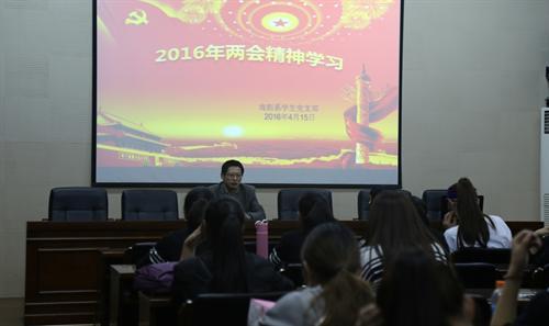 4月15日中午,戏剧系党总支组织学生党员、团总支学生会干部、第二十七期党校戏剧系学员和各班班长在13号楼一楼报告厅开展“两学一做”专题活动,学习2016年全国“两会”精神专题。?xml:namespace>