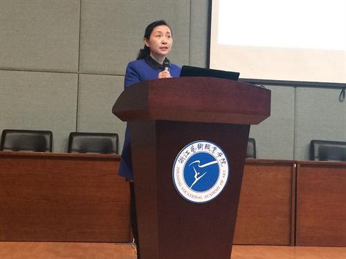 朱海闵做总结点评。她认为文明修身是一个克己的行为,是一个自律的行为,是一个人生的必修课,贯穿既漫长又短暂的人生之路。她指出文明修身重在坚持,贵在自觉。她要求在座的同学凝聚星星之火带动全校学子,用自己的力量、能量、热量去汇聚浙艺文明的涓涓长流。她希望浙艺人能用我们的存在给世界、给他人带去更多正能量,带给世界更多的美好。