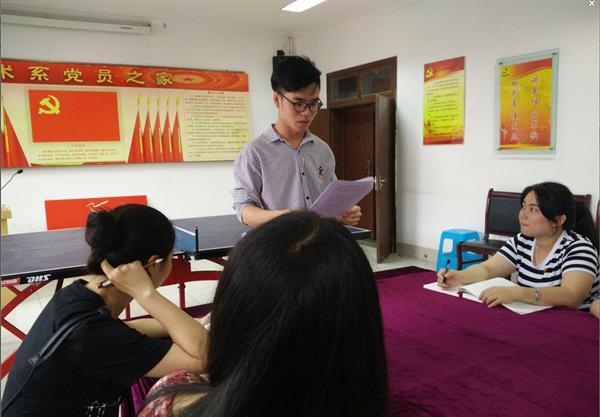 6月27日晚,系学生党支部在系部党员之家召开 “讲政治,有信念”专题研讨会,全体在校生党员参加了本次会议。党员们互相探讨了各自在班级日常工作中遇到的问题,以批评与自我批评的方式探索改进方向,力求进步与创新。会议最后,学生支部全体党员进行了党章党规知识测验。