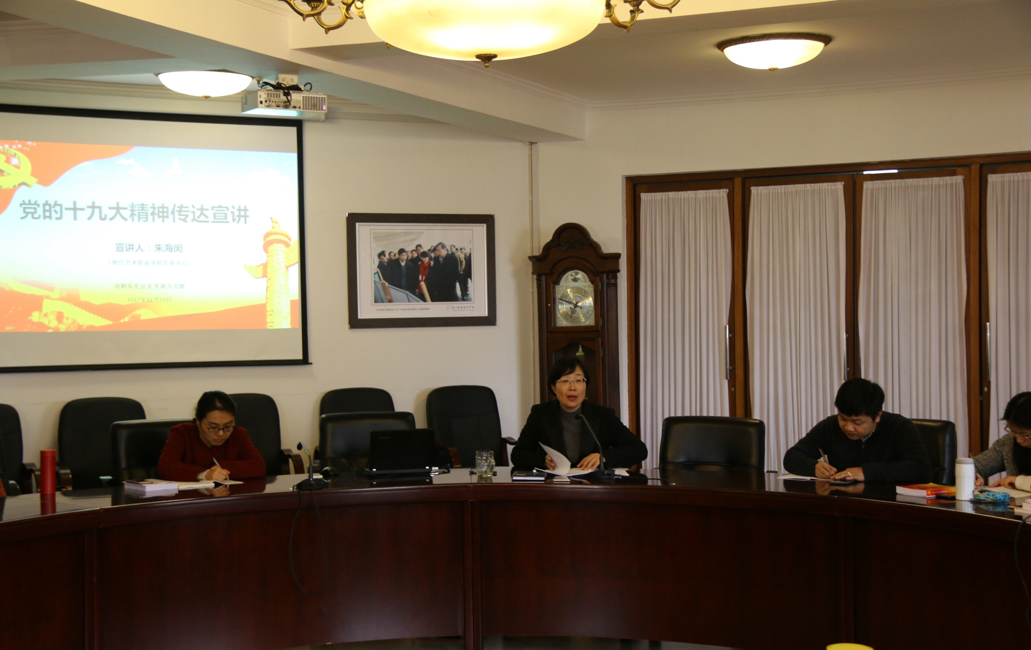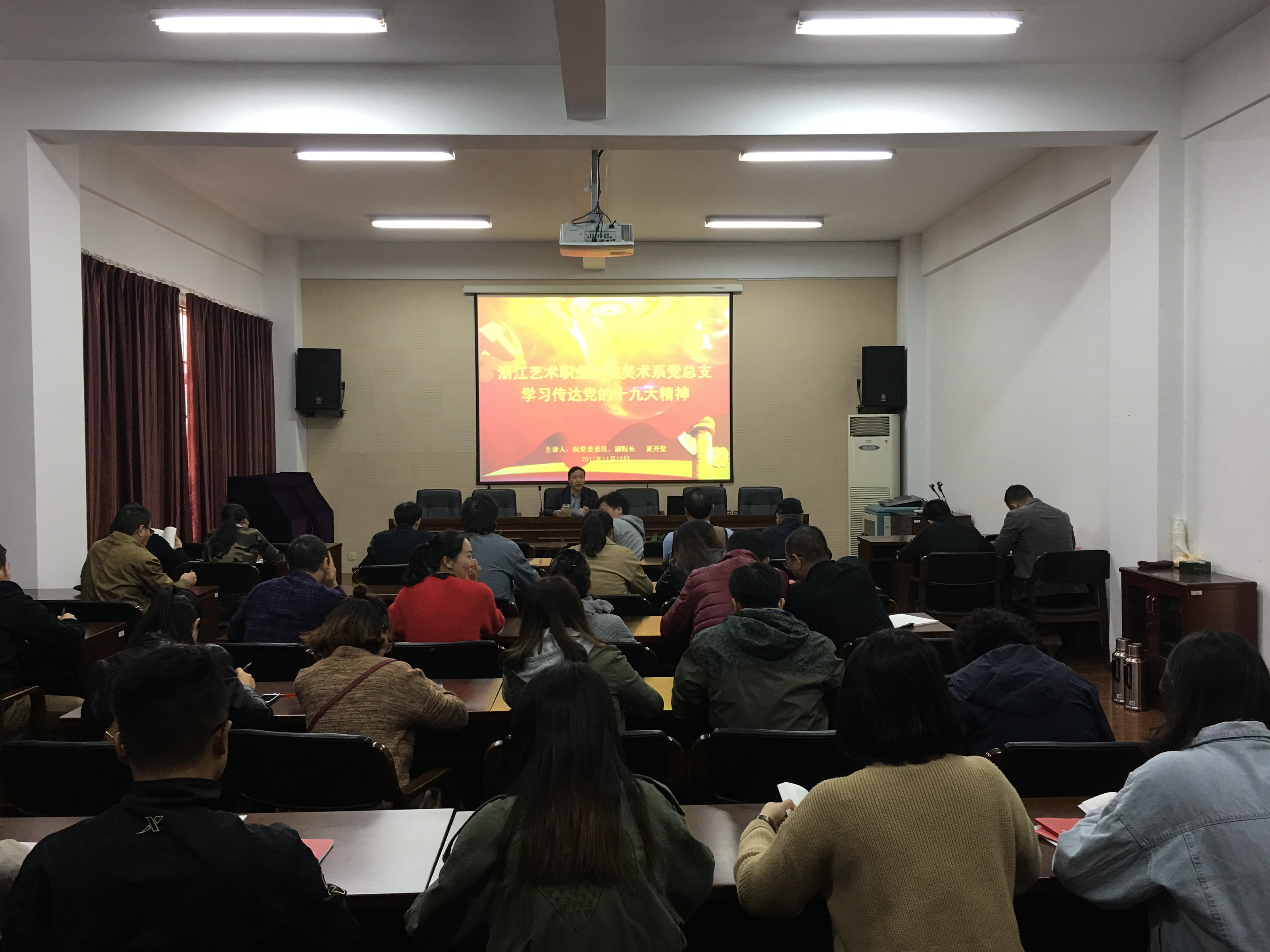11月9日至16日,党委书记朱海闵到戏剧系,党委副书记、院长黄杭娟到基础教学部,党委委员、副院长章轲到舞蹈系,党委委员、副院长沈恒到音乐系,党委委员、副院长夏开堂到美术系,党委委员、纪委书记徐芳到影视技术系,党委委员、副院长沈军甫到文化管理系分别传达宣讲党的十九大精神。机关部门也一同聆听了宣讲。通过面向全体教师传达宣讲,有效推动十九大精神进课堂、进教材、进头脑,在全校范围内掀起学习宣传贯彻十九大精神热潮。