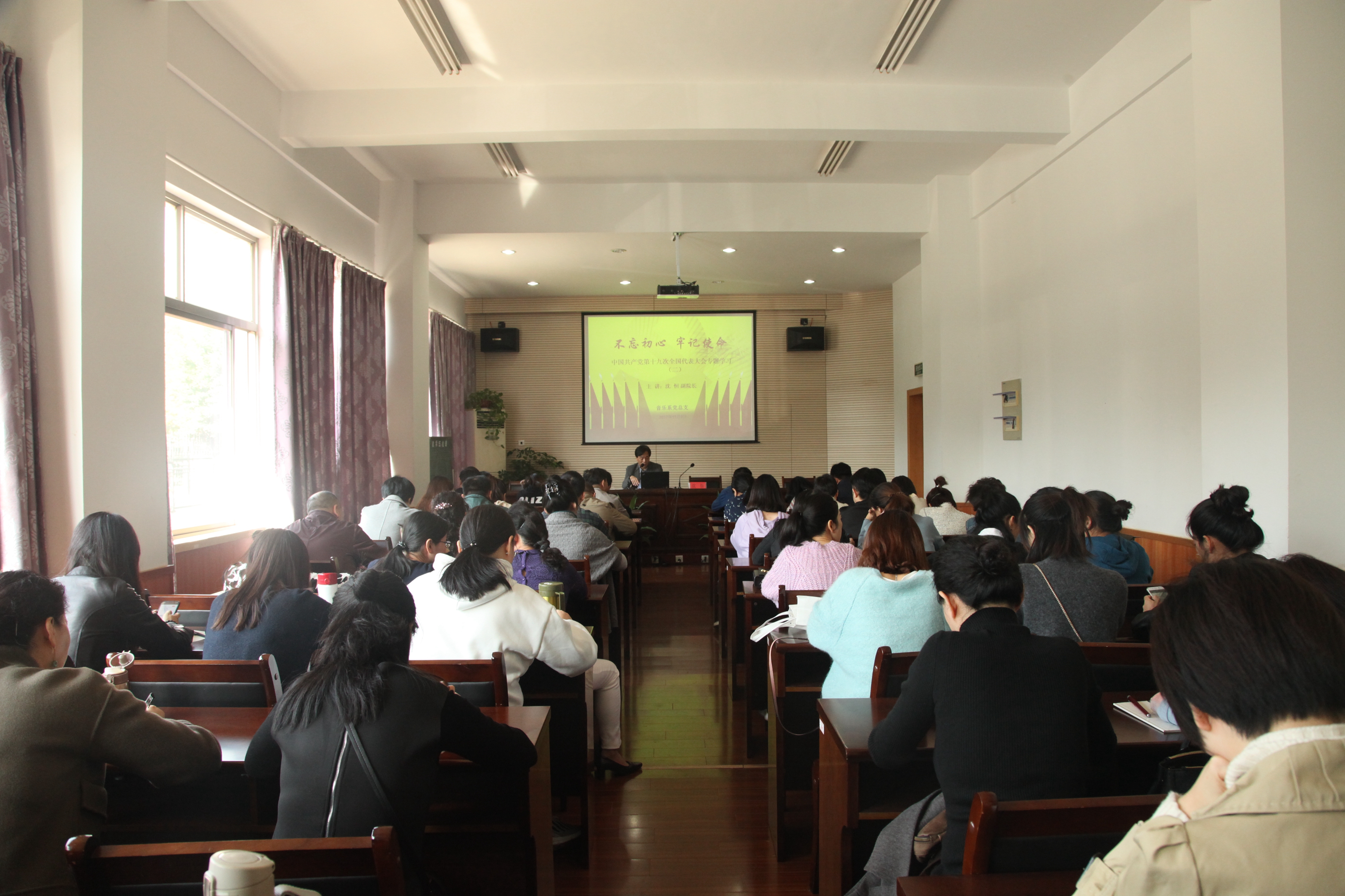 专题党课围绕十九大主题、主要成果、习近平新时代中国特色社会主义思想、过去五年的历史性成就和历史性变革、中国特色社会主义进入新时代和新时代党的历史使命、中国社会主要矛盾的变化、“两个一百年”奋斗目标的战略部署、中国经济社会发展的重大战略部署、坚定不移地推进全面从严治党八个方面向与会老师们详细传达了党的十九大精神。
