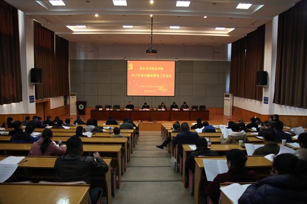会上,院党委书记朱海闵回顾总结了2016年学院党委落实党风廉政建设主体责任情况,并就做好今年的党风廉政建设和反腐败工作进行了动员和部署。朱海闵强调,要健全责任体系,必须建立健全责任体系,各级党组织负责人要严格落实“第一责任人”责任,班子其他成员要强化“一岗双责”;要加强理论学习,推进党委理论中心组、支部党员和教职工政治理论学习的规范化、制度化、常态化,不断强化党章党规党纪意识;要严肃党内生活,抓实“三会一课”制度,研究落实“党的书记抓党建”的举措,把党建育人、立德树人、传艺立人贯穿教育教学和人才培养全过程;要严明纪律规矩,学院党员领导干部要模范遵守党的各项纪律和规定,坚定理想信念,忠诚干净担当,在锤炼信仰中锻铸忠诚、在严守纪律中捍卫忠诚,在干好工作中砥砺忠诚;要加强干部队伍建设,坚持正确选人用人导向,健全科学的干部选拔任用机制,扎实做好换届工作,不断优化干部队伍素质与结构;要推进作风建设,始终保持正风肃纪高压态势,扎紧扎密制度笼子,不断改进作风、增强活力;要强化监督机制,建立健全内部审计、信访举报定期分析、线索排查制度,对干部苗头性问题及时约谈提醒;要坚定文化自信,以文化自信支撑政治定力。