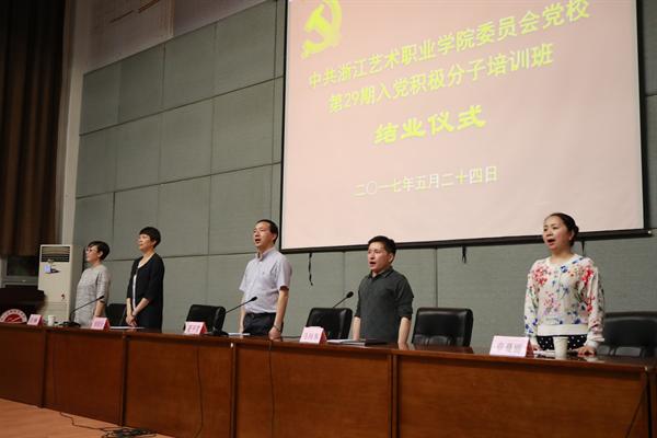 结业仪式在国歌声中开始。经考核,本期培训班有136名学员成绩合格,获得结业。大会为全体结业学员颁发党校培训结业证书,对14名优秀学员、12名优秀论文获得者、2个优秀班级和2名优秀班主任以及党校第九届学员论坛暨“立德树人”主题微型党课比赛获奖学员进行表彰。