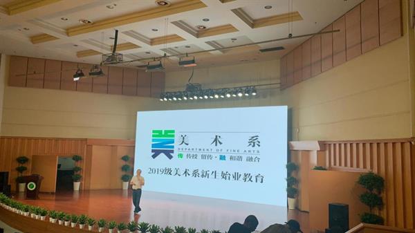 9月11日晚上六点,美术系举行2019级新生始业教育活动。美术系党政领导班子携全体教师与新生见面。美术系党总支书记、副主任(主持工作)刘发奎老师向全体新生问好,向同学们讲述“德、智、体、美、劳”全面发展的内涵,特别强调大家在“劳”方面的践行,也祝愿同学们在美丽而温馨的浙艺生活、学习愉快。美术系两位教授杜晨鹰、陈志明向新生们传授了学习方法,并真切寄语。各专业教研室向学生介绍专业情况、学习之路、就业方向等等。办公室、团学的老师们向新生们介绍了日常规章,为同学们在校在系的学习、生活、办事提供了便捷路径。