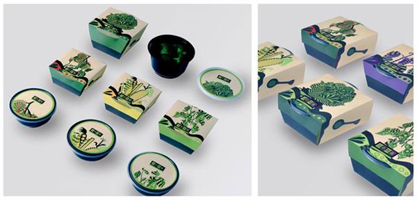 二等奖作品:《“念你青蔬”素食餐厅外卖盒包装设计》 设计:张路遥 指导教师:娄旻