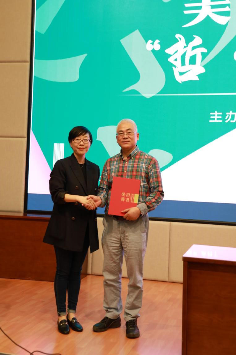 美术系党总支书记汪琳为王炜民颁发荣誉证书。