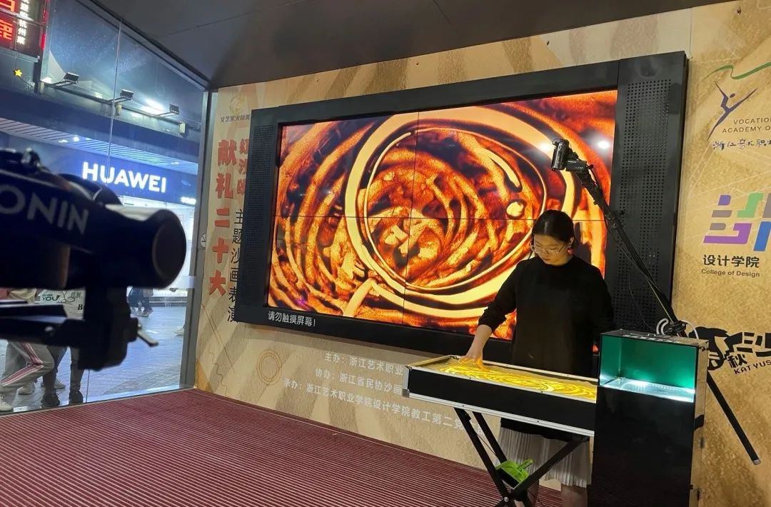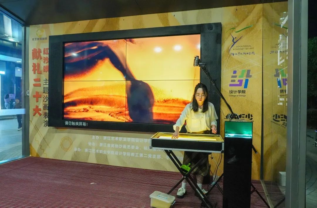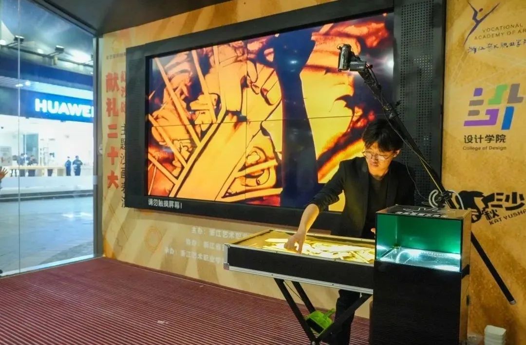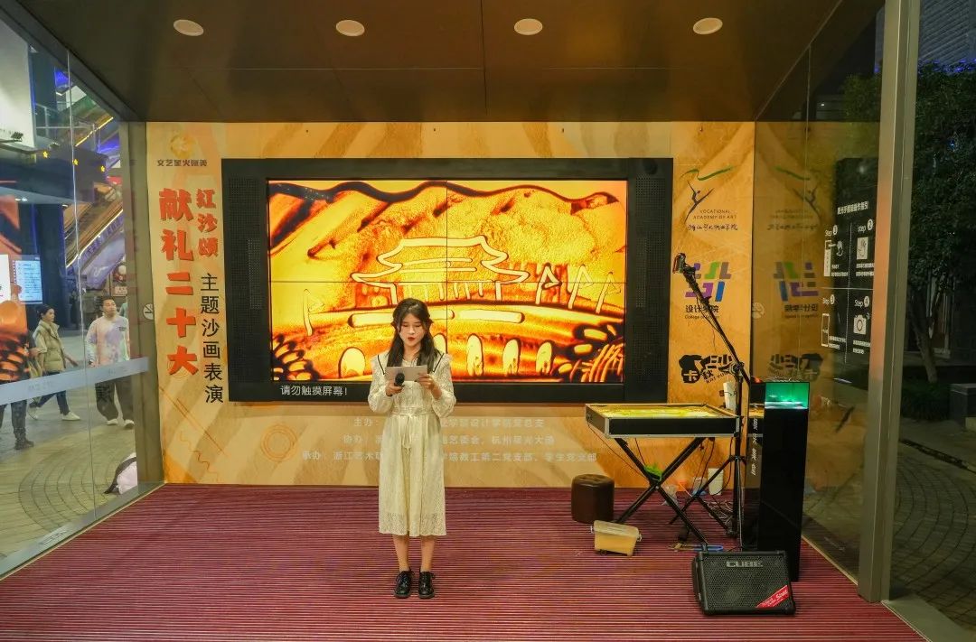11月12日,由设计学院党总支与浙江民协沙画艺委会共同参与的“文艺星火赋美工程”在星光大道一期电影盒子顺利举行。本期表演内容以红色动漫为主题,以艺术沙画表演为载体,通过艺术的形式赋美城市气质、营造文化生态,献礼党的二十大!