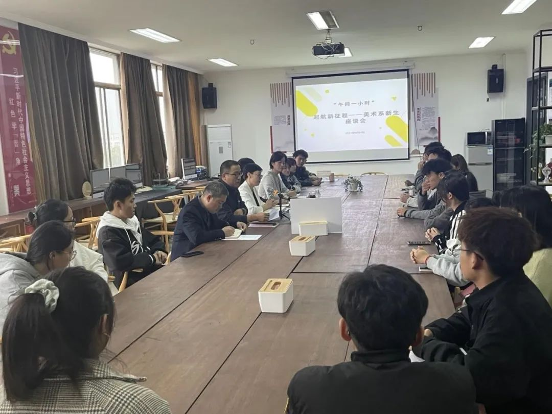 美术系党总支书记汪琳、常务副主任李昌国、副主任何佳玮、组织员、全体辅导员以及20余位新生代表共同参加了本次座谈会。
