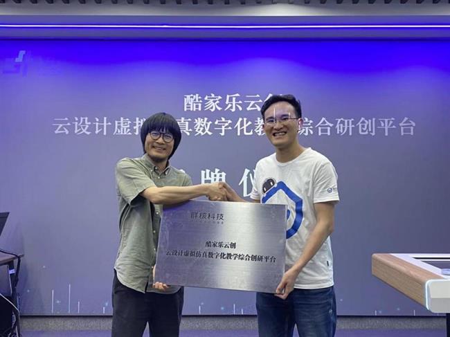 随后,校企合作双方在云设计虚拟仿真数字化工作室举行了授牌仪式,授牌仪式由环境艺术设计教研室主任陶靓子主持,李昌国和应秀王为“酷家乐云创云设计虚拟仿真数字化教学综合创研平台”共同揭牌。