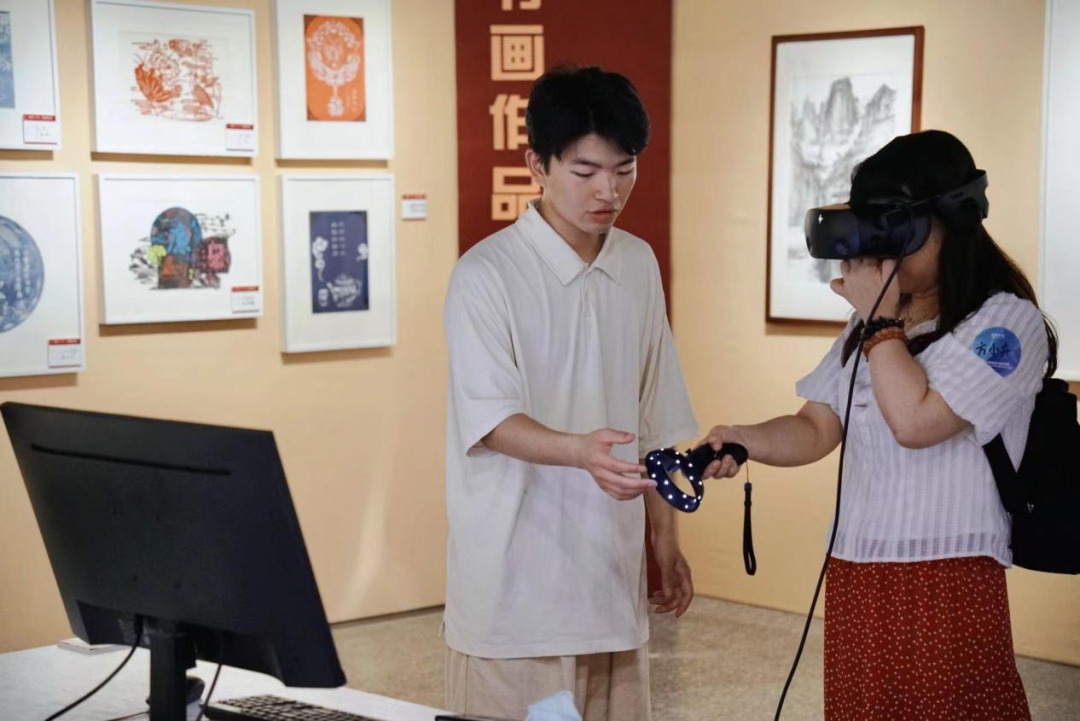 会后,一行人于设计学院一楼展厅参观了环境艺术设计专业学生展出的优秀作品,并有环境艺术设计专业学生对用VR设备展示的空间设计作品进行讲解,同时有团队教师对教学思路进行介绍。