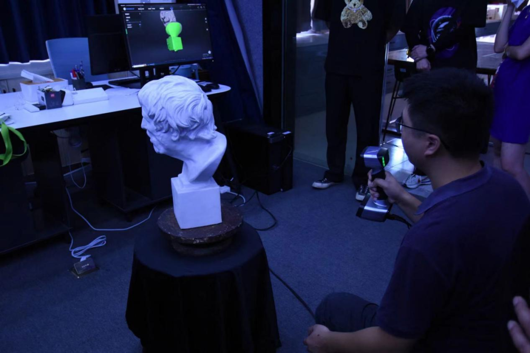 最后,与会人员来到云设计虚拟仿真数字化工作室,对VR虚拟现实头显设备、OR物体识别台、3D智能扫描仪等设备进行了体验与交流。工作室将设计产业和科技技术的最新发展相联系,也展现了将环境艺术设计行业人才培养的最新要求引入教学的成果。