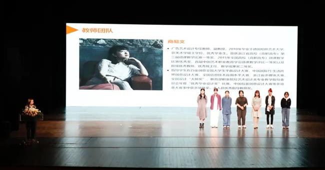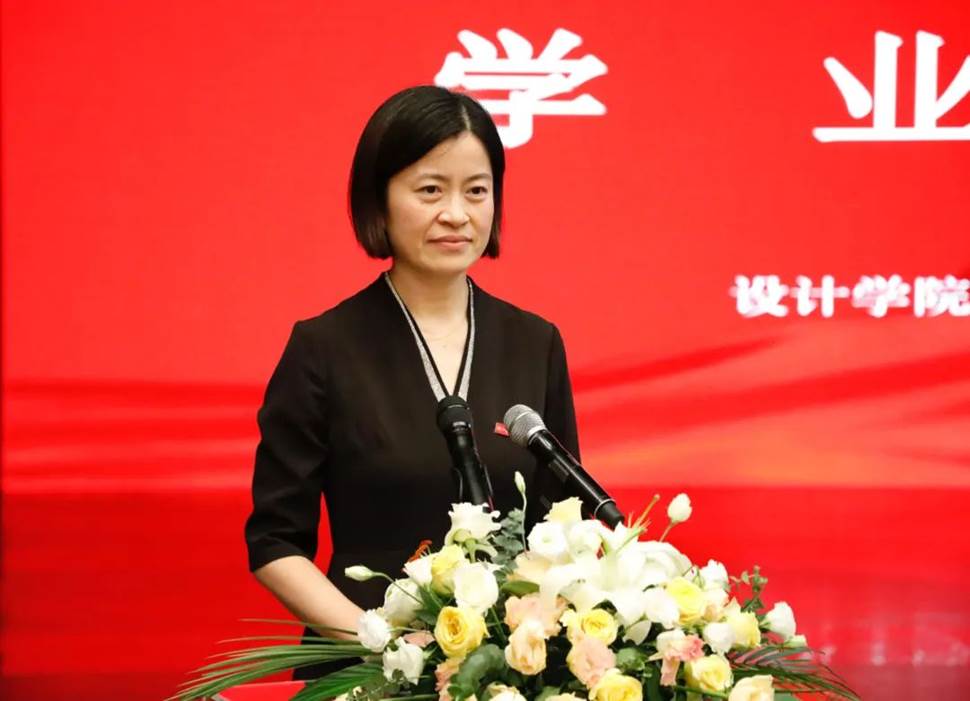 何佳玮作课程规划介绍。她提到,设计学院联合马克思主义学院、基础教学部的教学力量,打造专业课程与通识课程并重的教学体系,设计学子应笃学奋进、求知力行,在丰富的课程选择和教学内容中拓宽人文学术视野,提升思想道德品性,擦亮职业道路底色。