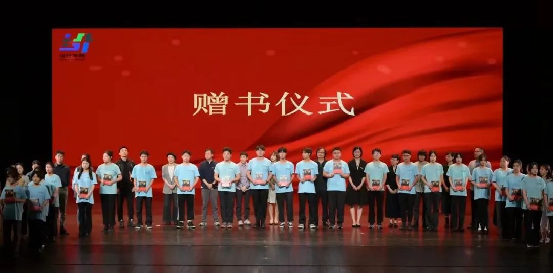 领导、各教研室主任、专业带头人和新生班主任为新生代表赠书。
