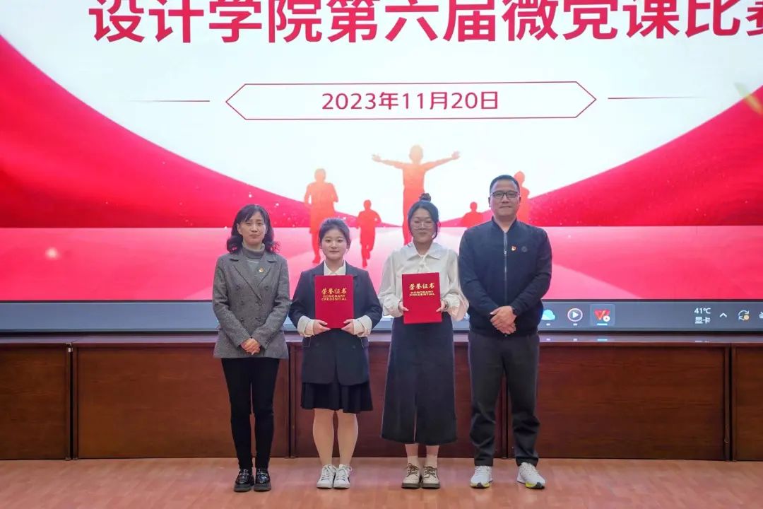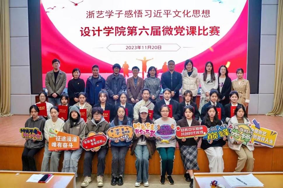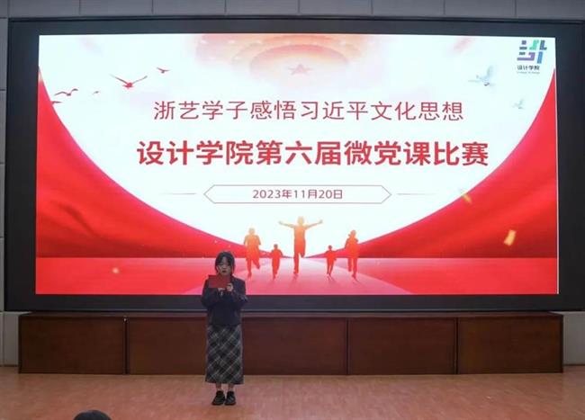 为深入学习贯彻习近平文化思想,持续推进新时代文化建设,进一步增强设计学院学生党组织建设,扎实推进理论学习,引导广大青年学生筑牢思想之基、补足精神之钙、把稳思想之舵,自觉做习近平新时代中国特色社会主义思想的坚定信仰者和忠实实践者,11月20日,设计学院开展“浙艺学子感悟习近平文化思想”第六届微党课比赛。基础教学部(公共体育部)党总支副书记、副主任顾才铭,马克思主义学院副院长胡卓群,设计学院党总支书记汪琳,院长李昌国,党总支副书记汪仕龙,副院长何佳玮,党总支委员、教工第二党支部书记贾娜娜,学生党支部书记龚林峰出席并担任评委。辅导员、学生党员、第42期党校学员、 “正青春”青年理论学习小组成员、青年团员现场观摩学习。