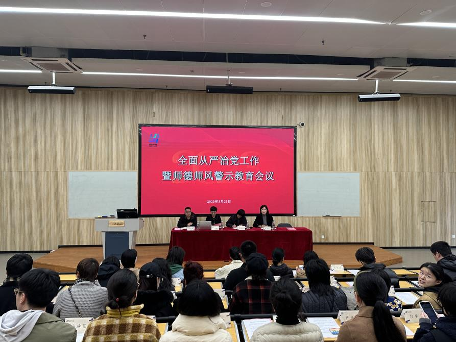 党总支专职副书记顾才铭作师德师风警示教育,传达部署了学校2023年全面从严治党工作会议精神。他强调,要以建设“勤廉学校”为牵引,重点抓好以下工作:一要坚定不移加强政治建设,抓好政治学习、政治引领、抓好政治监督。二要坚定不移抓牢立德树人根基,全力提高“三全育人”质效,着力打造精品思政。三要坚定不移推进强基固本,建强基层党组织战斗堡垒,推动党建创优。四要健全全面从严治党体系,严格执纪问责,狠抓工作实效,奋力确保风清气正的育人环境。会上,顾才铭就2022届毕业生就业率及满意度调研情况作了详细分析。