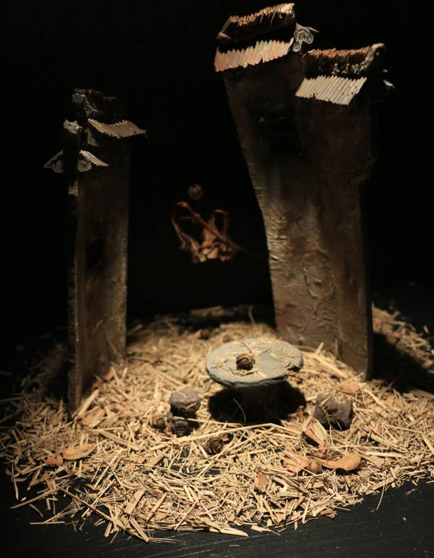 虽然课余生活丰富,但在学习上我从不缺课,在学了一年多的课本基础后我开始创作舞台模型作品《残垣》。李昌国老师和吴放老师对设计教学非常严谨,让同学们不断训练模型制作,从空间与视觉的变化提高敏感度,把故事从模型创作中呈现出来。训练成功是喜悦的,要获得必须要先敢于面对困难,观察生活,积极探讨。后来我们慢慢地从理论转实践,给影视表演班设计并制作一部部话剧的舞美道具。那时候我和同学第一次拿起榔头、锯子等工具当上了“装修”师傅,在各种材料中不断摸索如何制作出逼真的舞美作品。后来在2014年,舞美教研室的老师们带着我们参加了中国舞台美术(广州)年展,我设计的舞美作品获得金奖。